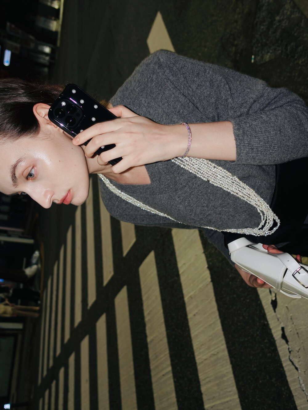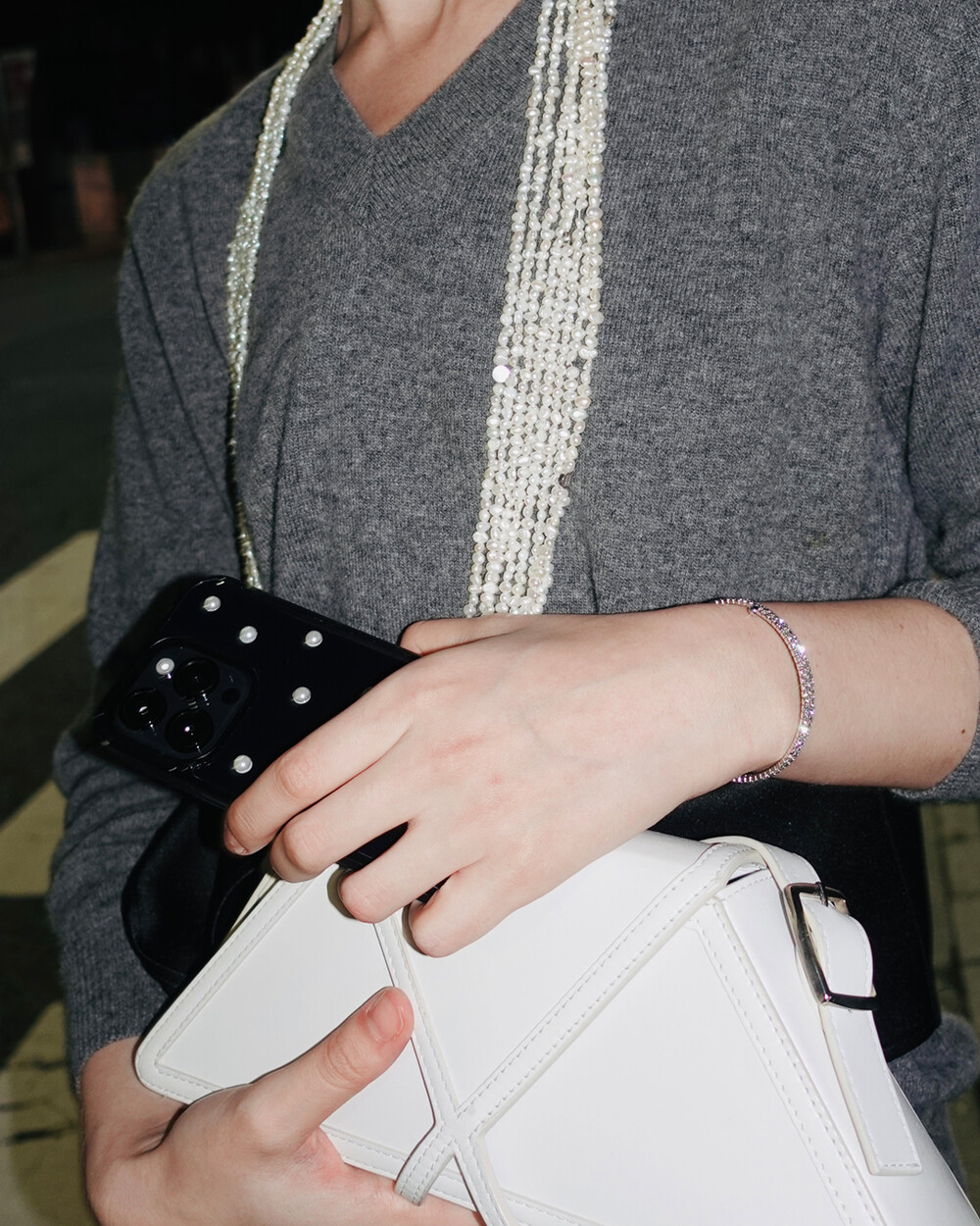 견고한 에폭시 범퍼 케이스를 기반으로 제작된 이 제품은 충격으로부터 폰을 안전하게 보호하면서도, 로로의 아이덴티티를 담아낸 진주와 큐빅은 마치 밤하늘에 수놓인 별처럼 케이스 위에 고요히 자리합니다. 표면 위에 올려진 입체적인 장식은 케이스에 고급스러운 볼륨감을 부여하며, 움직임에 따라 은은한 광채를 발산해 마치 밤하늘에 흩뿌려진 별빛 같은 매혹적인 분위기를 연출합니다. 섬세한 광택과 정교한 디테일은 일상 속에서도 세련된 감각을 드러내며, 단순한 보호 기능을 넘어 움직임마다 은은한 빛을 머금어 하나의 예술적인 오브제로 거듭납니다.