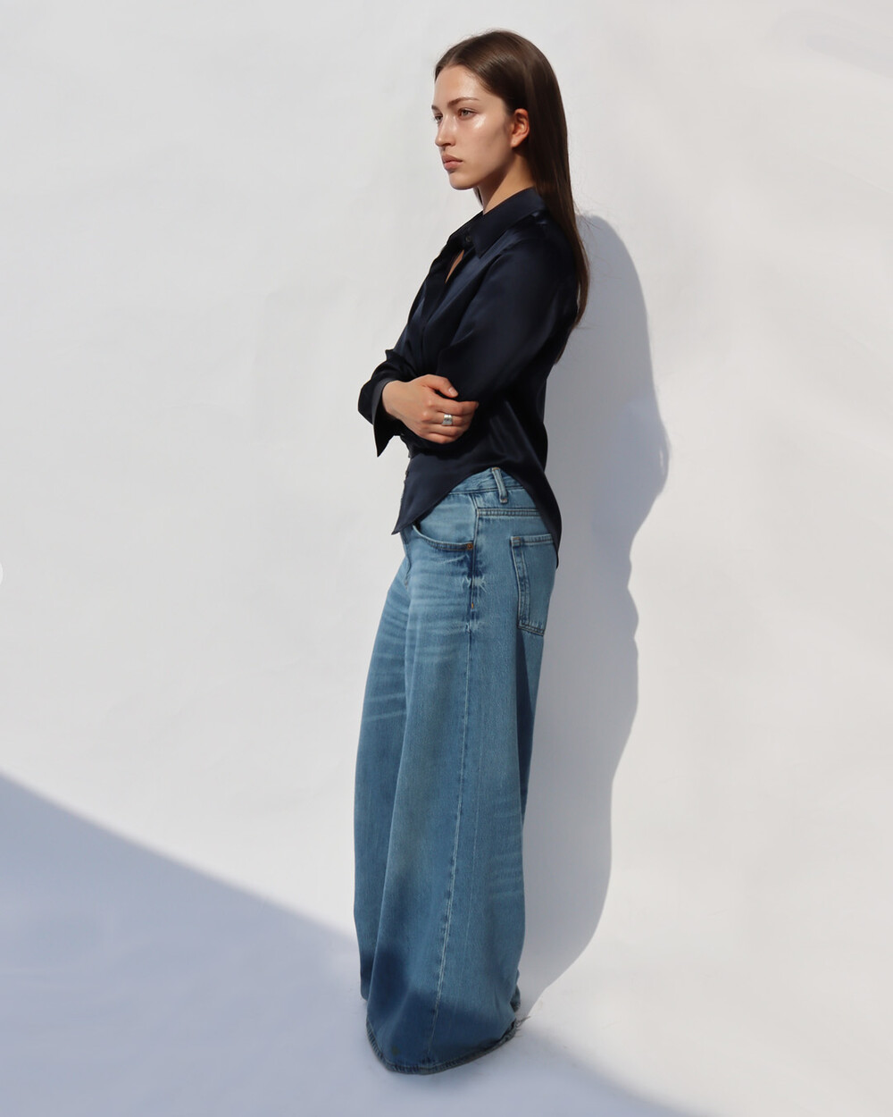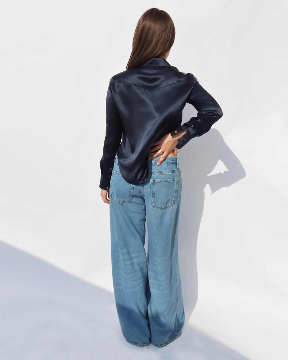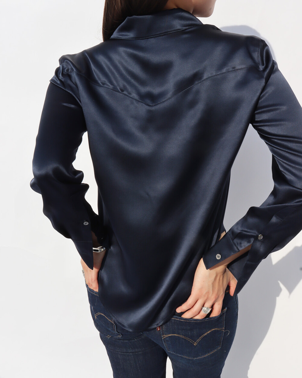FLUID CURVE SILK SHIRT (Classic Navy)