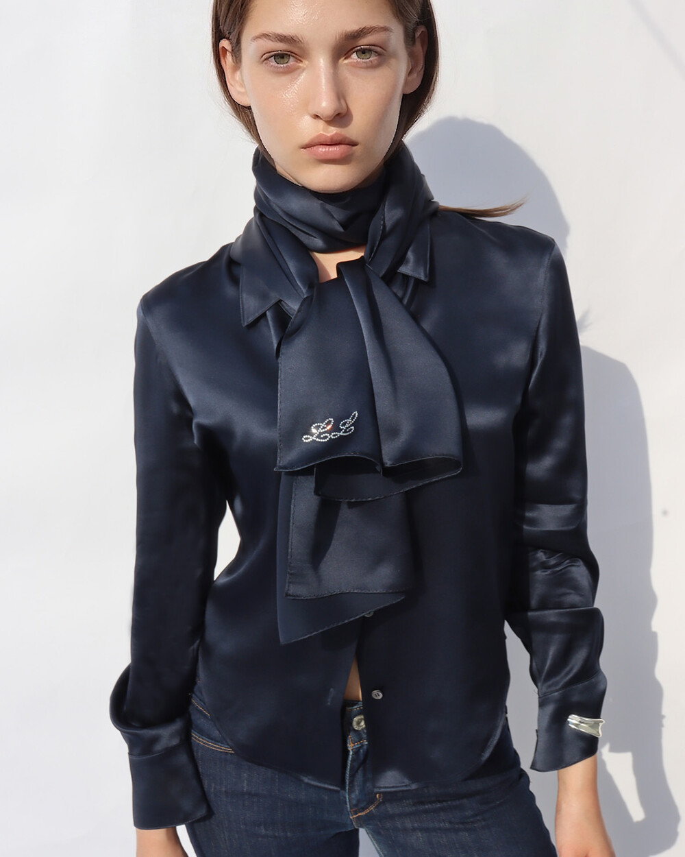 Classic & Volume : 목에 가볍게 한두 번 둘러 클래식하게 연출해 보세요. 부드러운 실크가 자연스러운 주름을 만들어내며 볼륨감 있고 포근한 룩을 완성합니다.