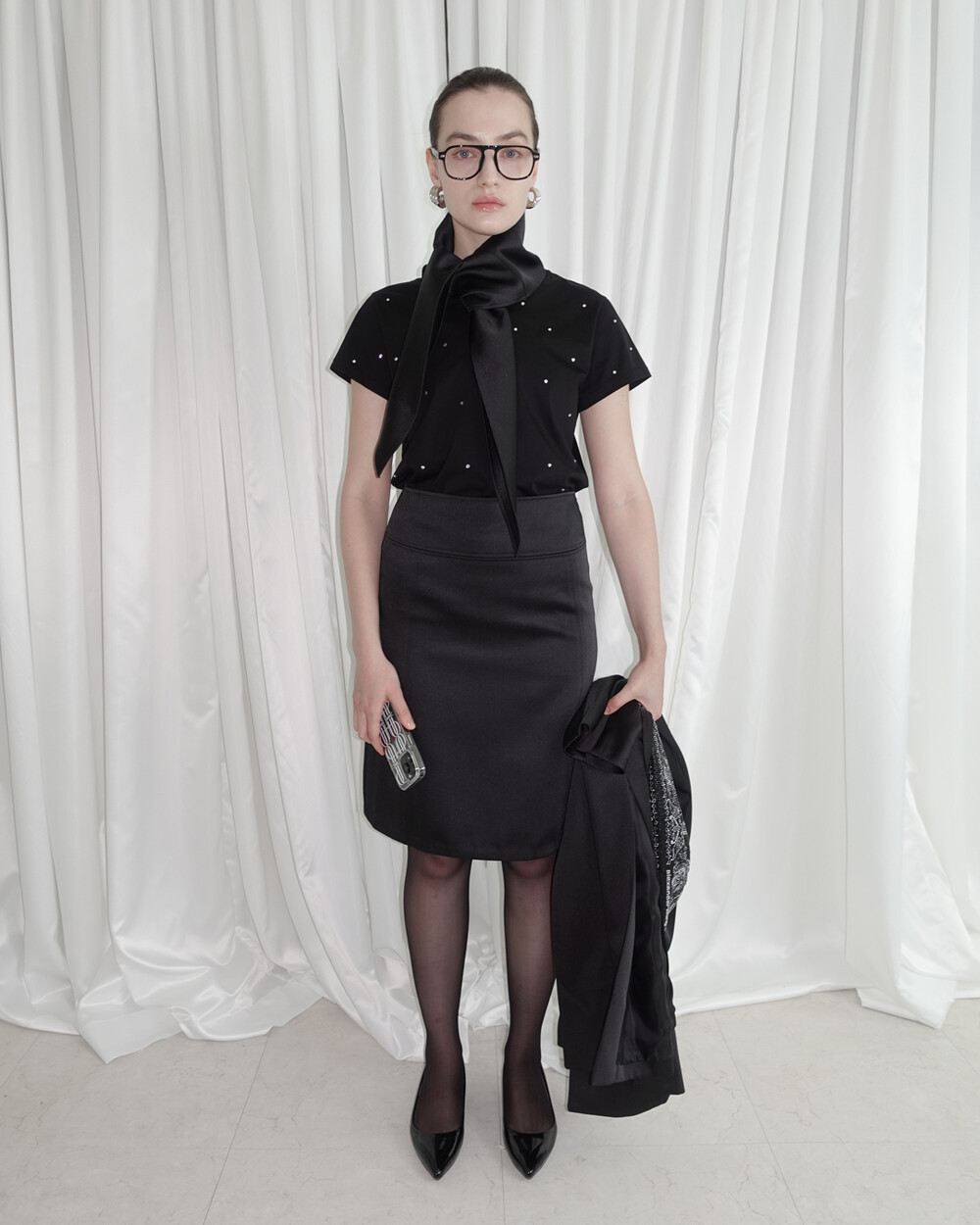 - 사선 방향의 소매 디테일로 팔뚝을 슬림하게 연출