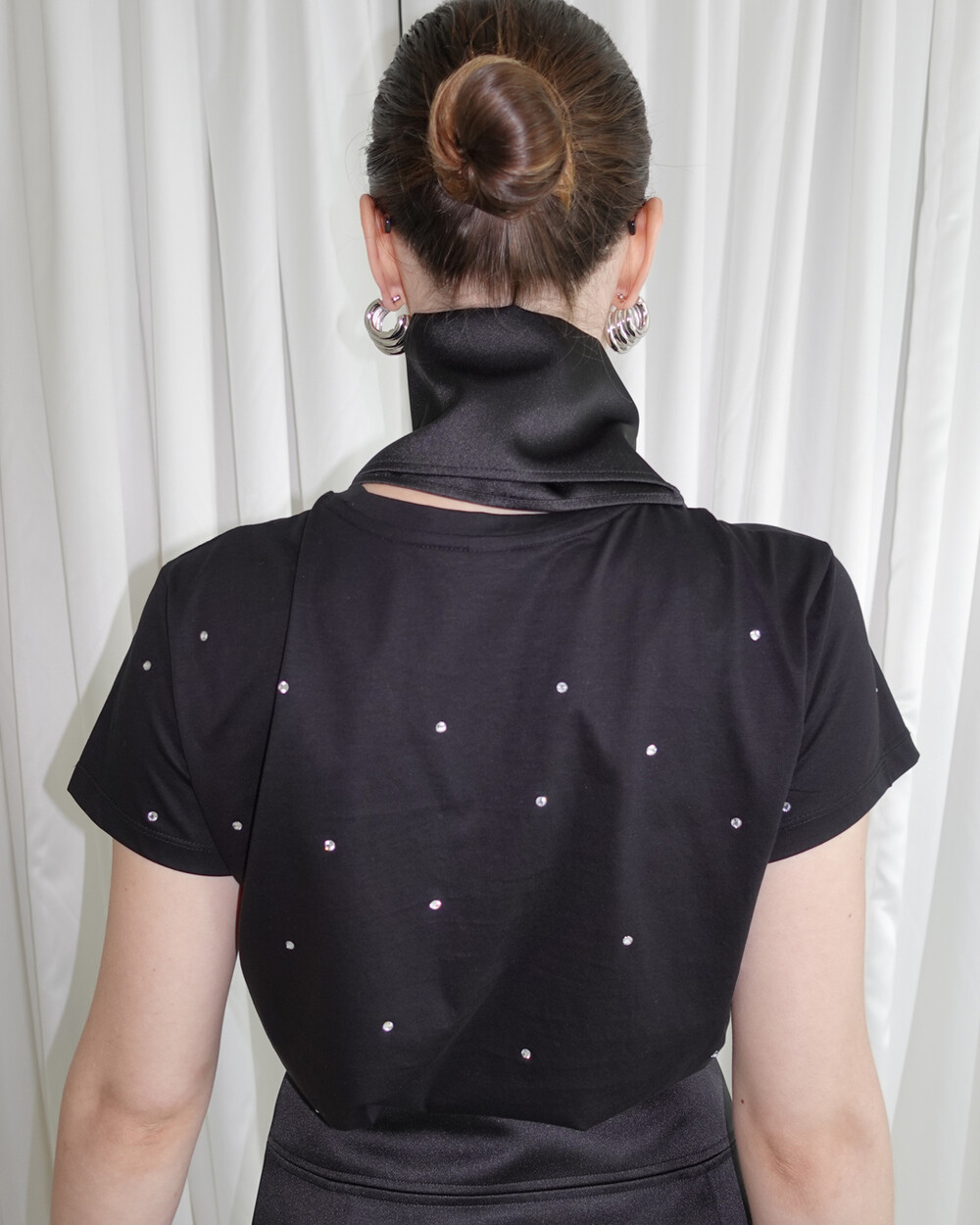 - 티셔츠 앞뒤 모두 파츠가 다량 부착되어 있어 다림질시 주의해주세요.