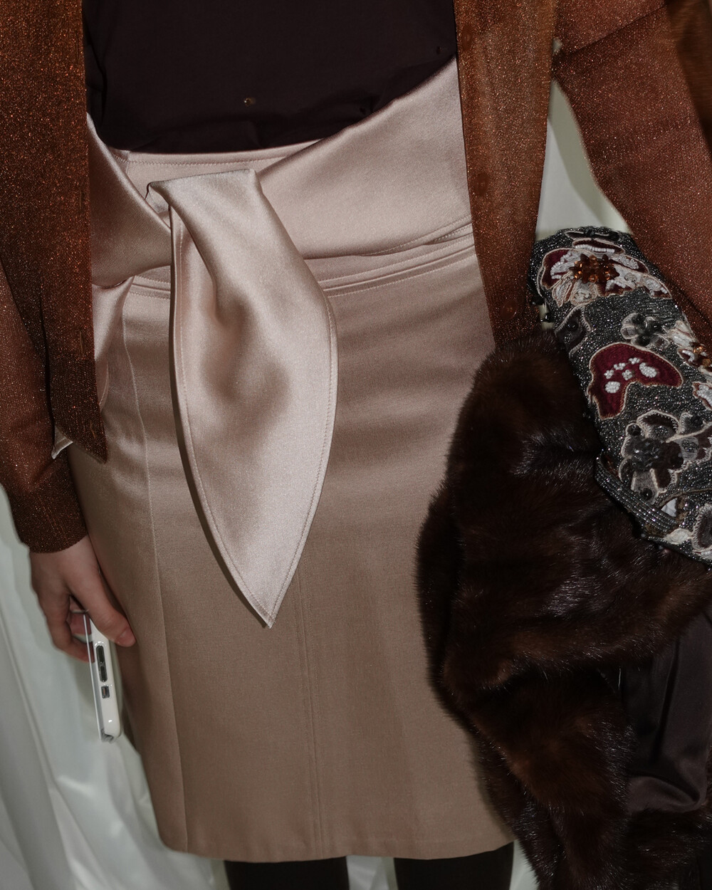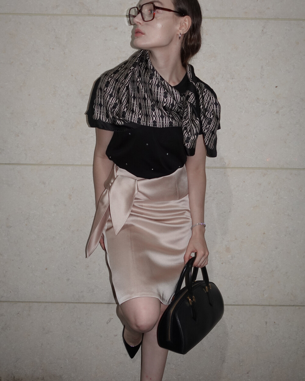 - 단단하고 실키한 소재와 A라인 디자인으로 90년대 클래식 무드 연출