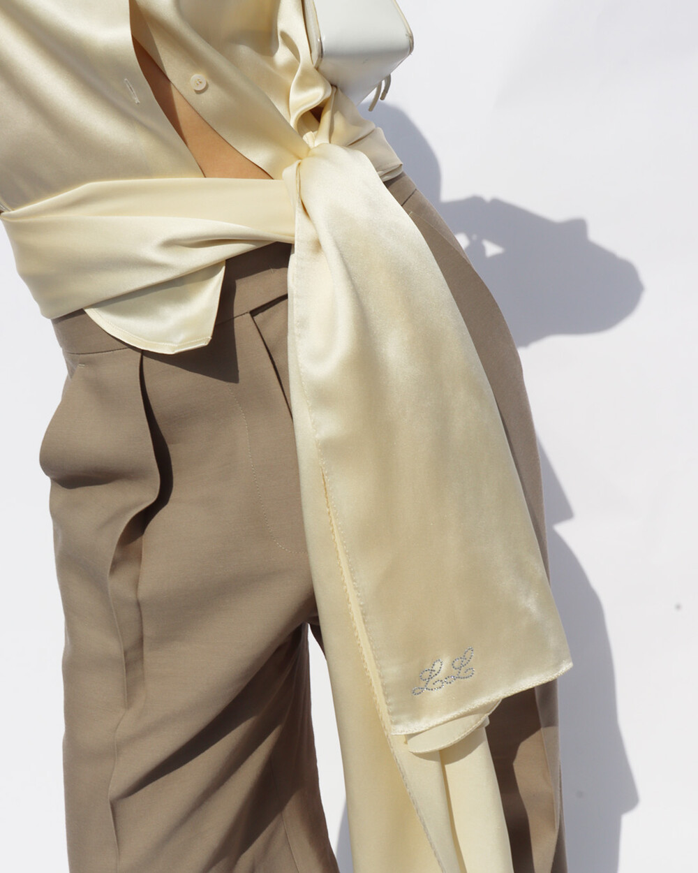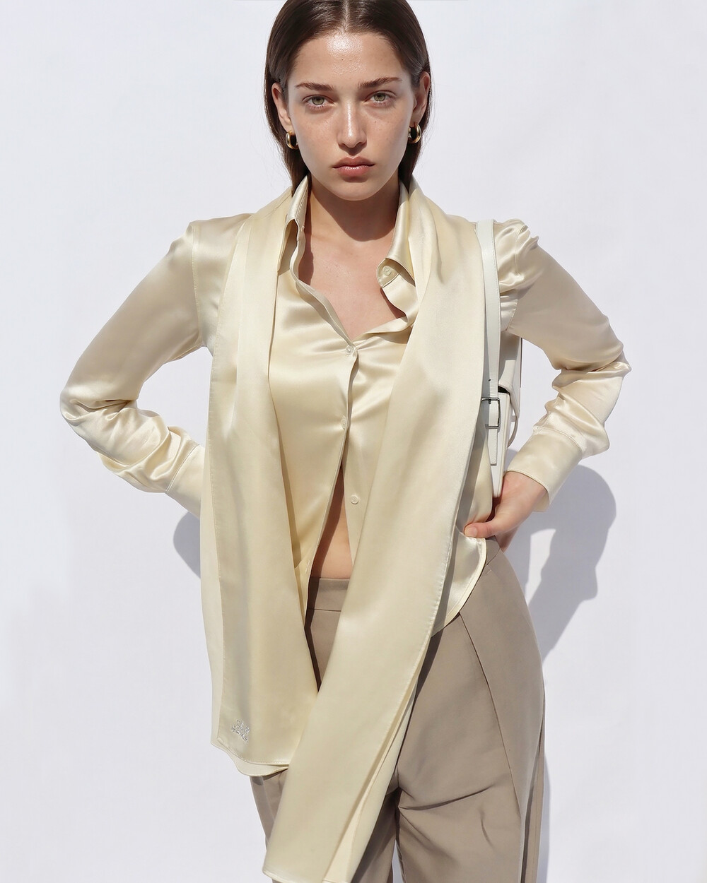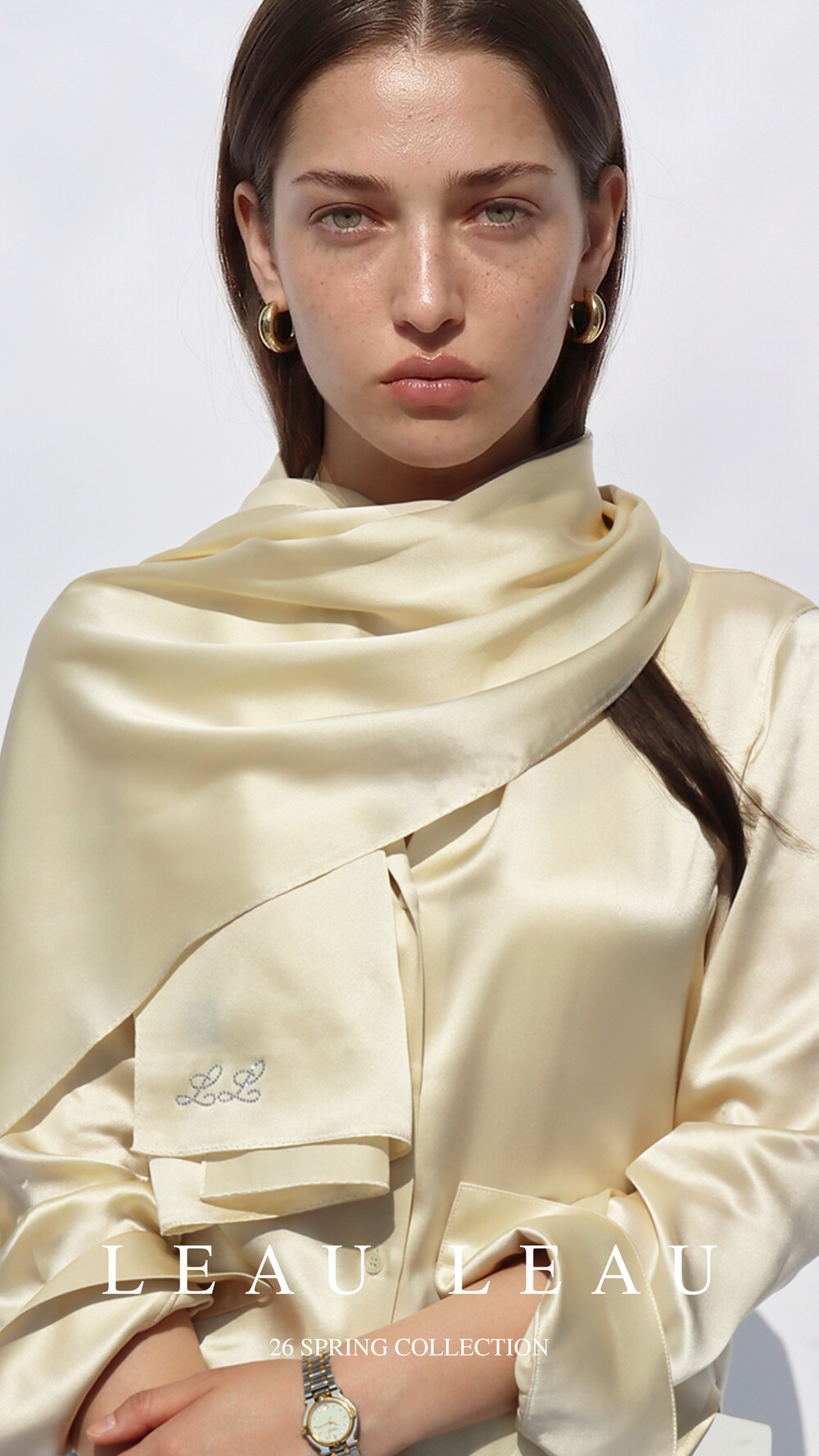 Classic & Volume : 목에 가볍게 한두 번 둘러 클래식하게 연출해 보세요. 부드러운 실크가 자연스러운 주름을 만들어내며 볼륨감 있고 포근한 룩을 완성합니다.