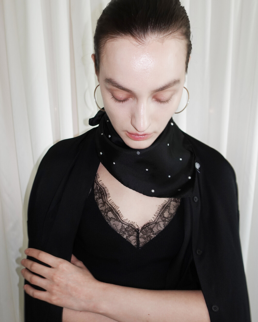 - 진주 도트 패턴이 섬세하게 수놓아진 디테일