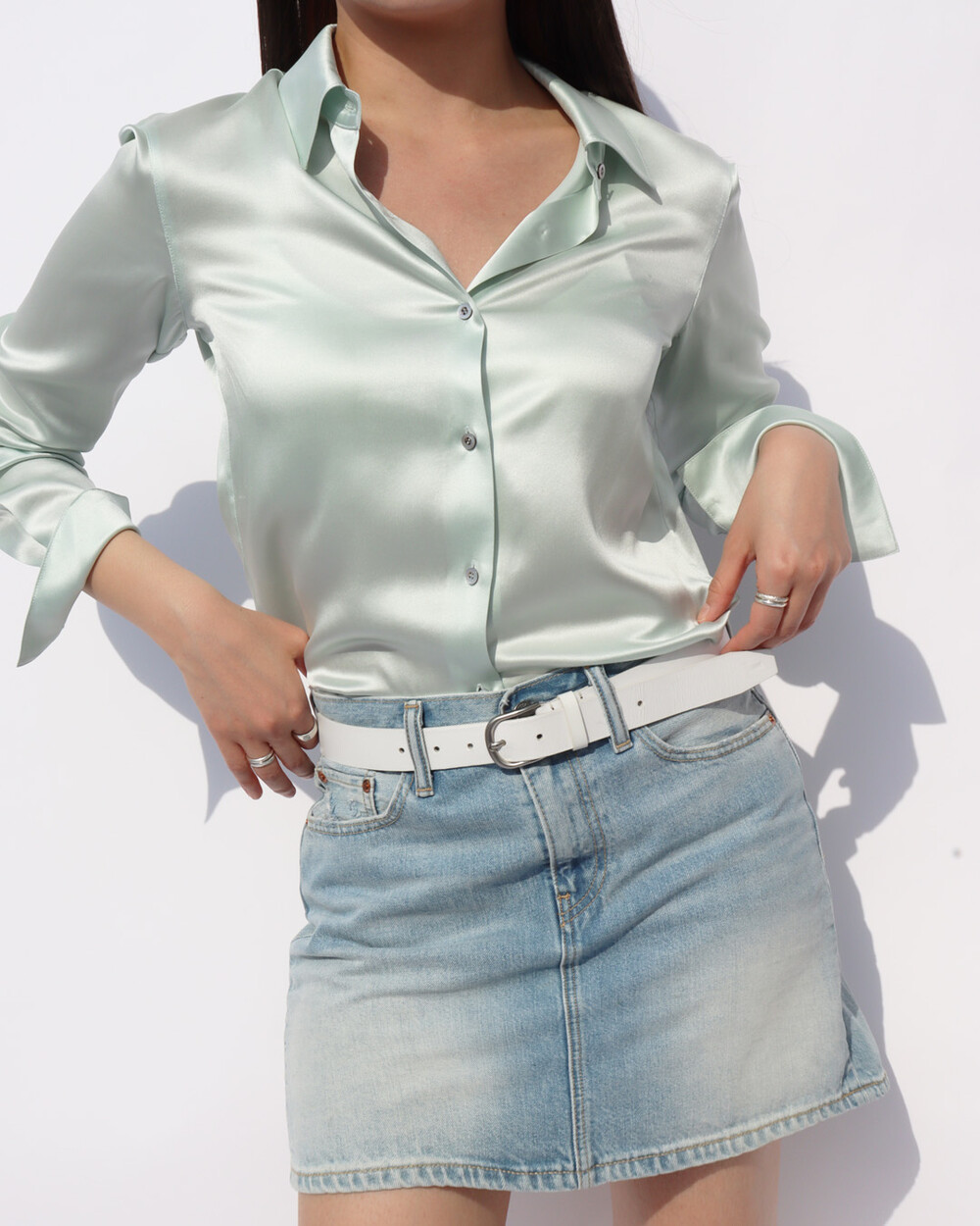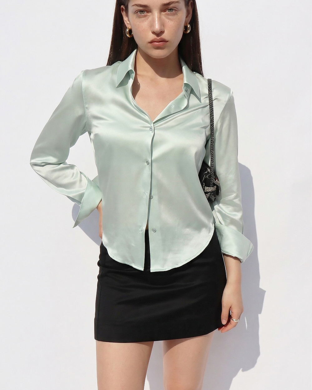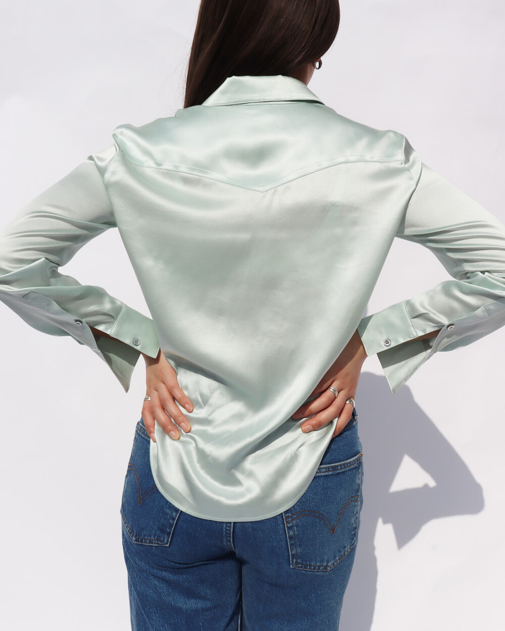 FLUID CURVE SILK SHIRT (Opaque Mint)