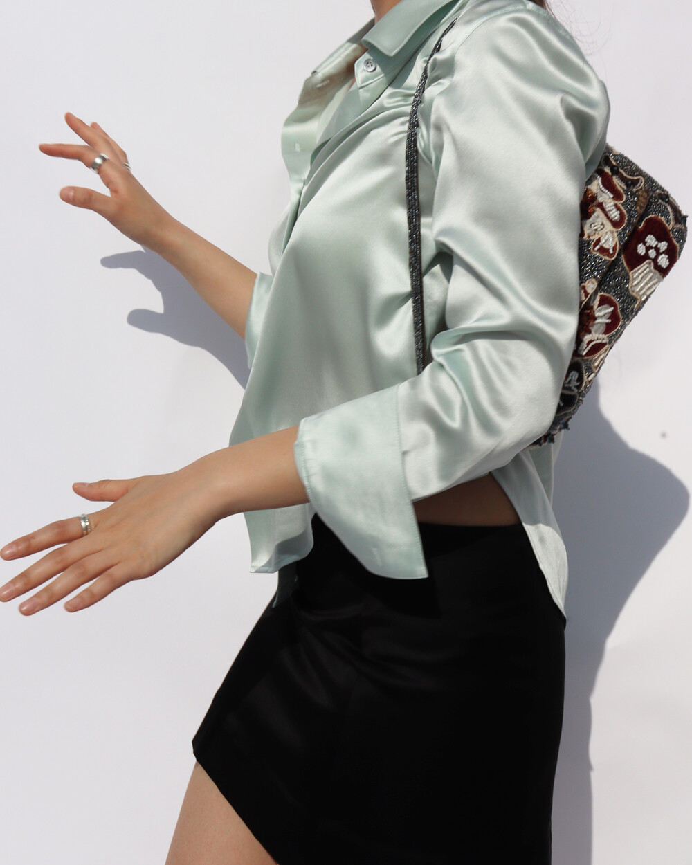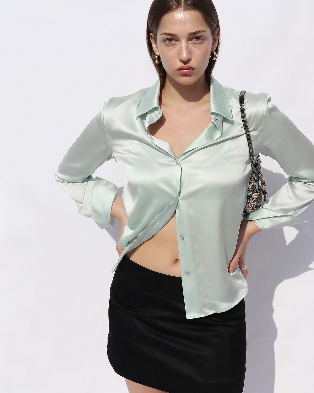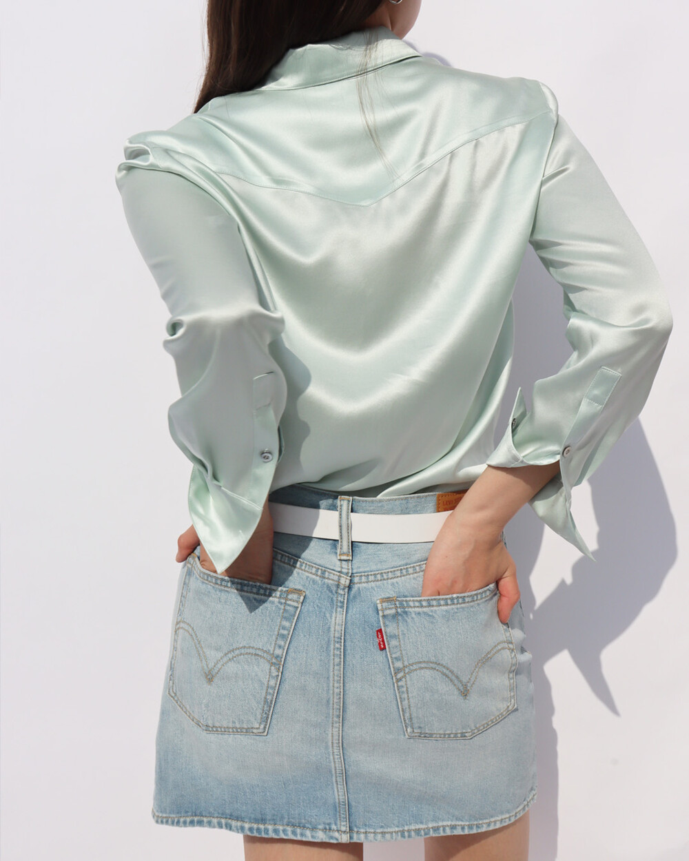 FLUID CURVE SILK SHIRT (Opaque Mint)