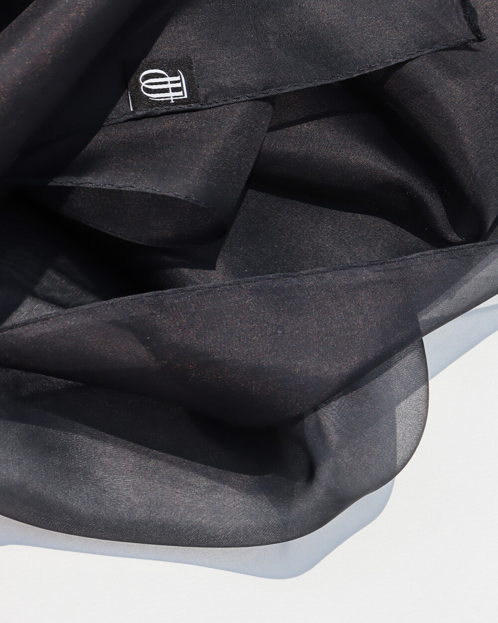 Architectural Volume: 오간디 특유의 힘 있는 텐션이 롱 기장과 만나, 가볍게 둘러도 구조적이고 입체적인 실루엣을 유지합니다.
