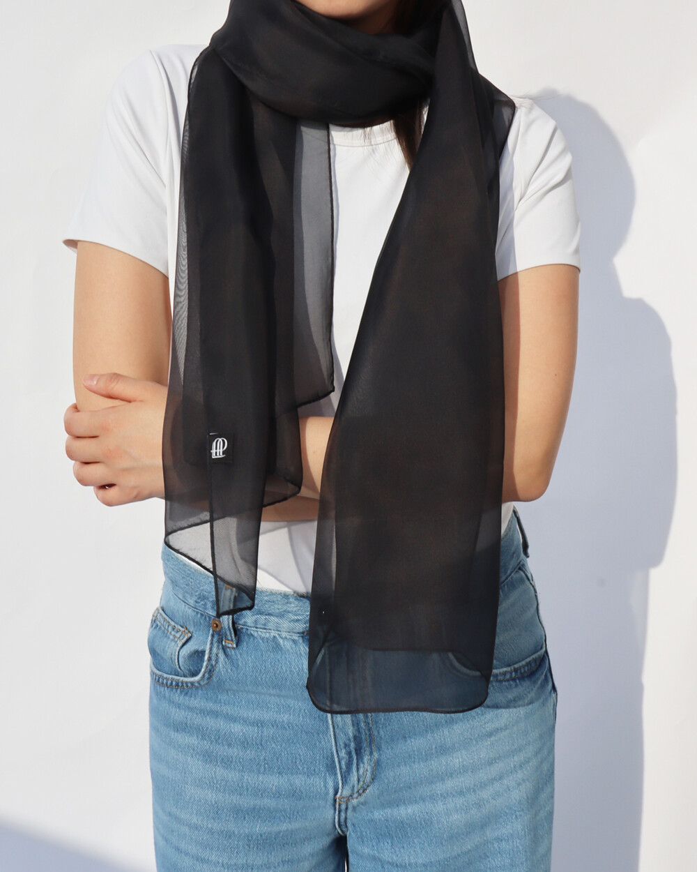 SHEER ORGANDY LONG SCARF (Black)