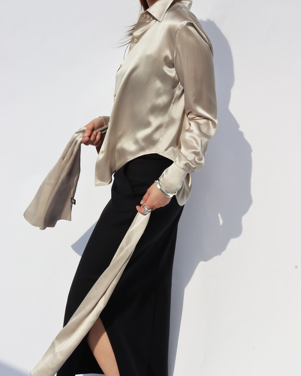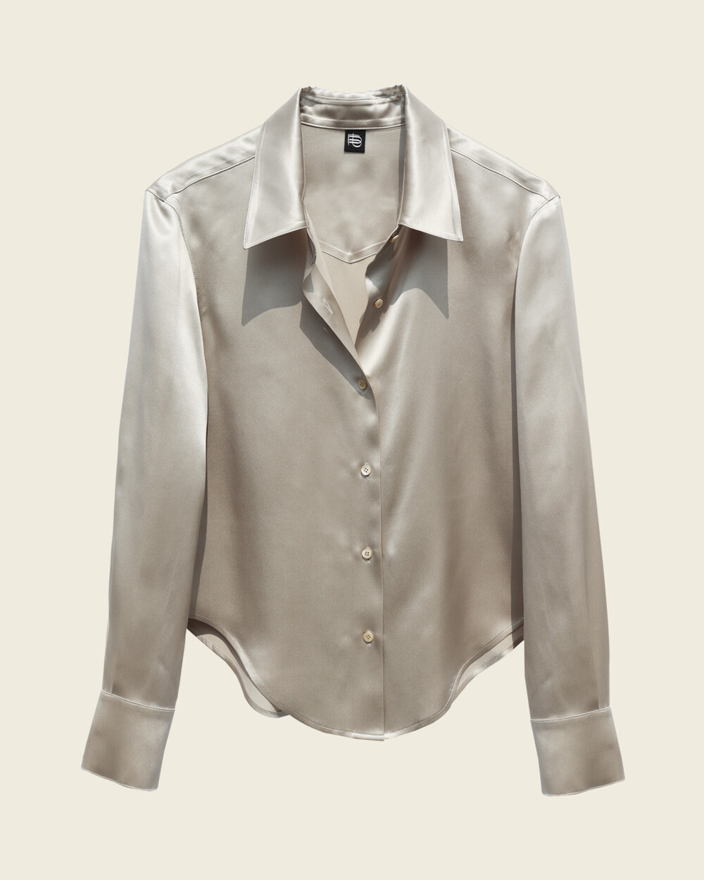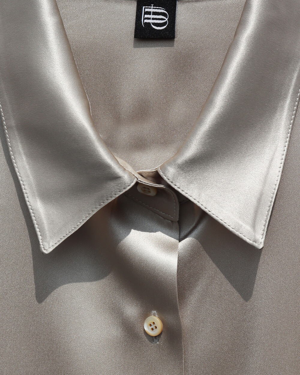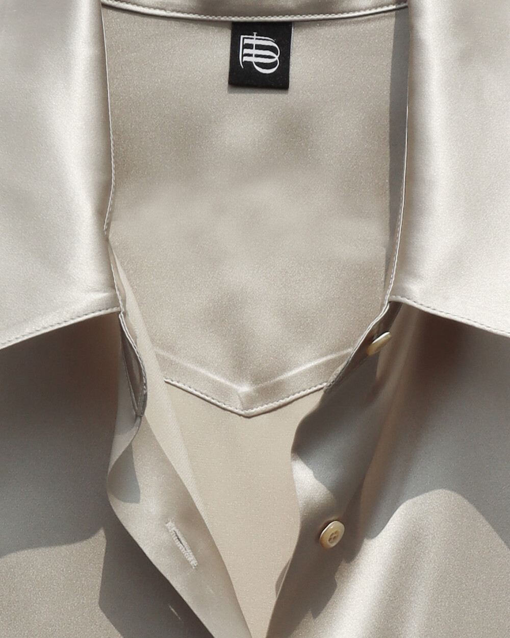 FLUID CURVE SILK SHIRT (Sand Silver)