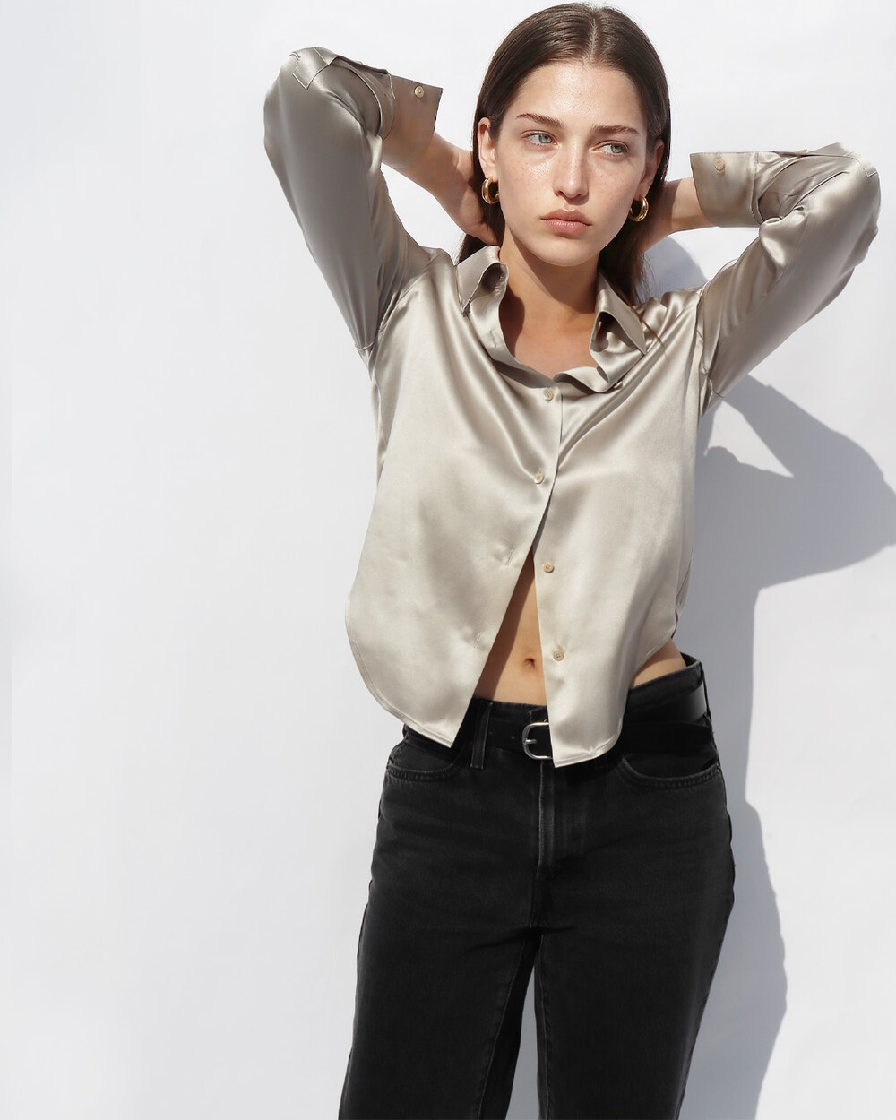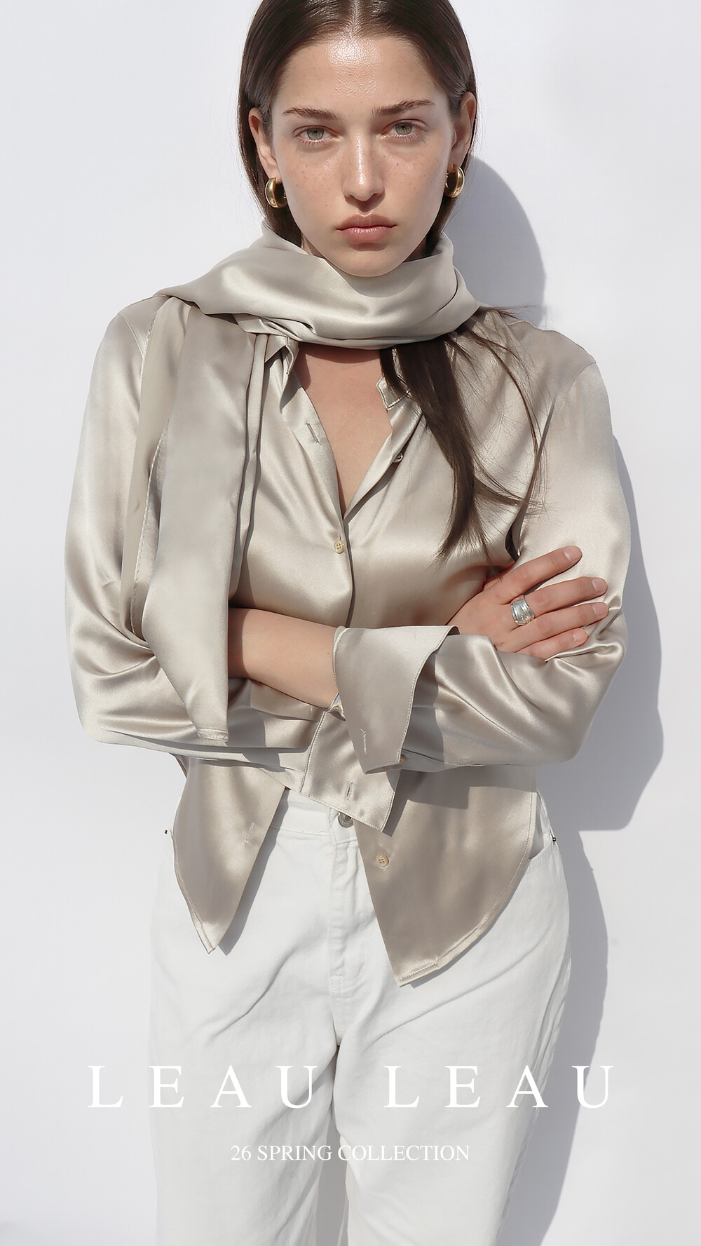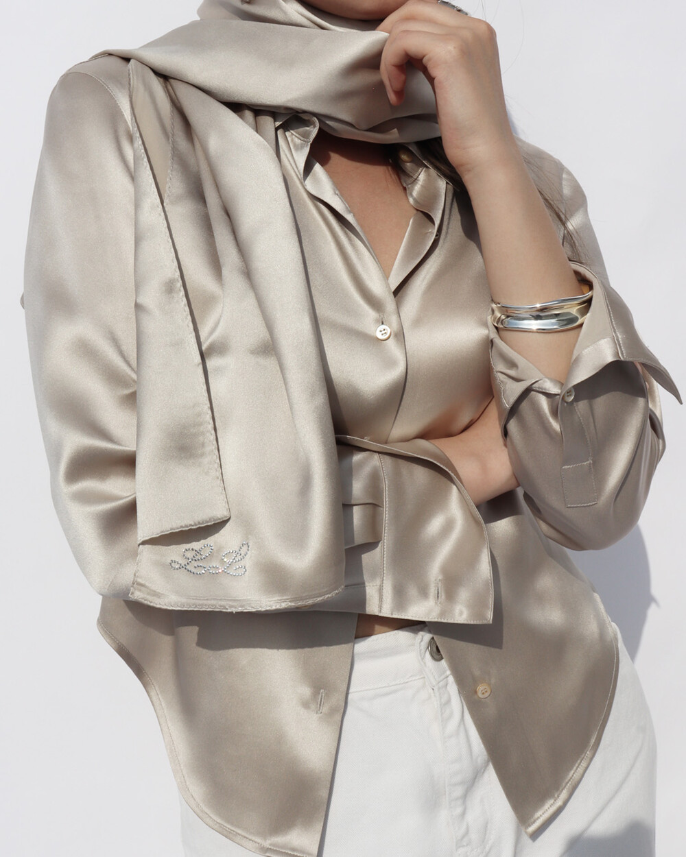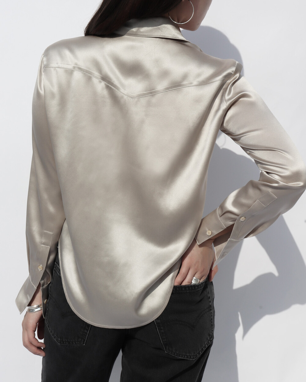 FLUID CURVE SILK SHIRT (Sand Silver)