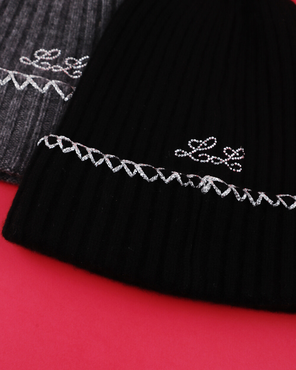 SILVERLINE "LL" CASHMERE100% BEANIE (Black)